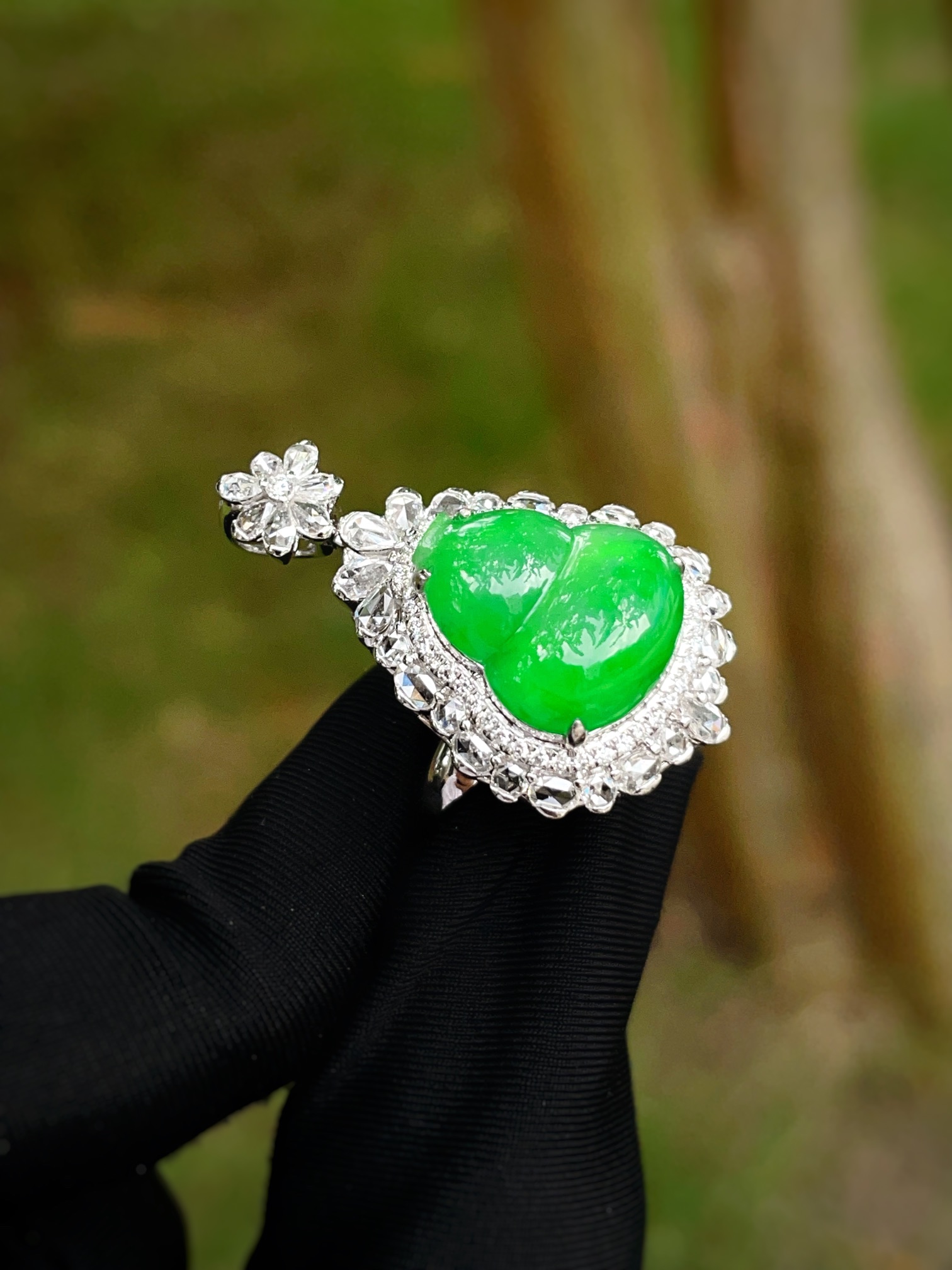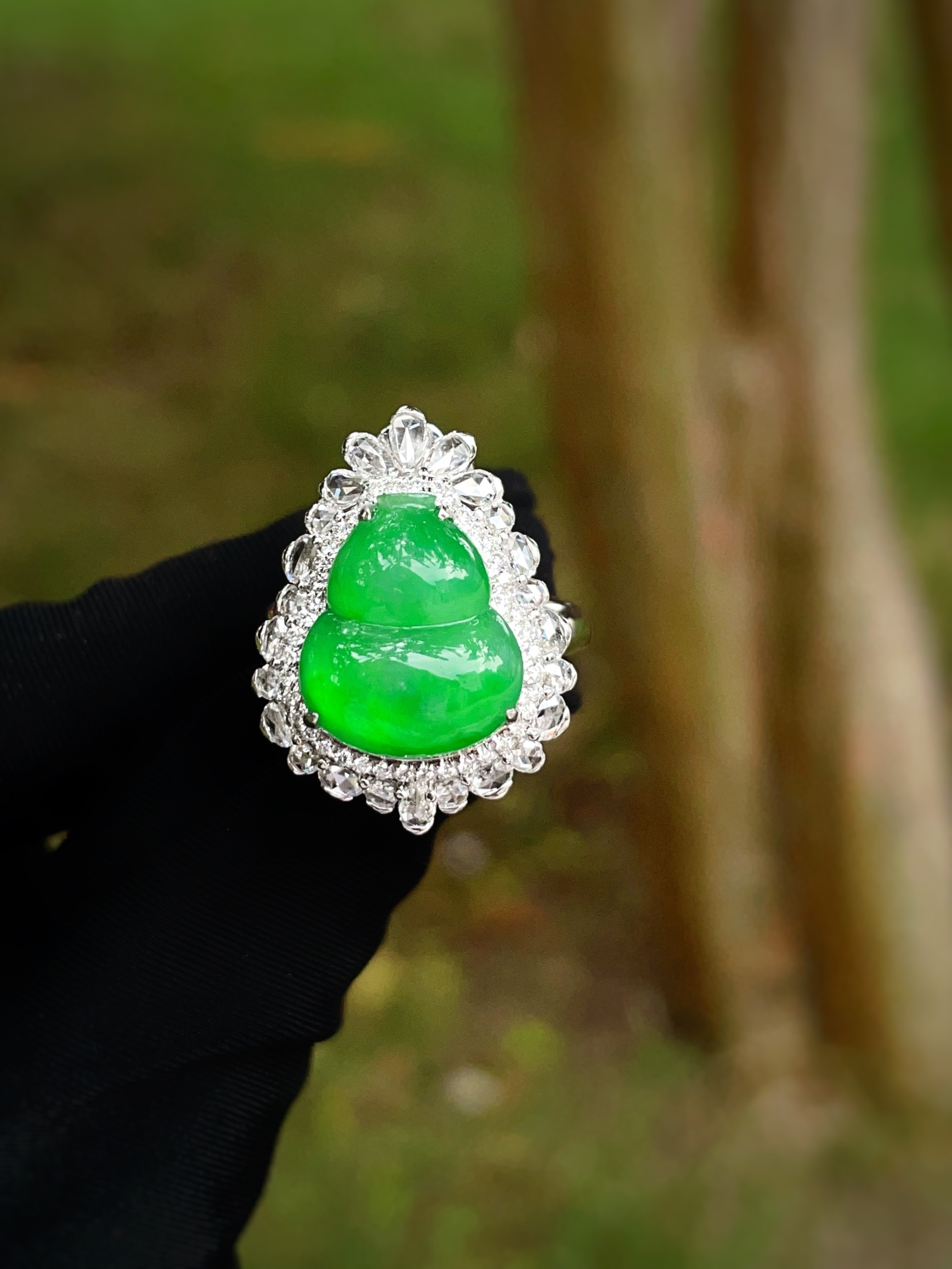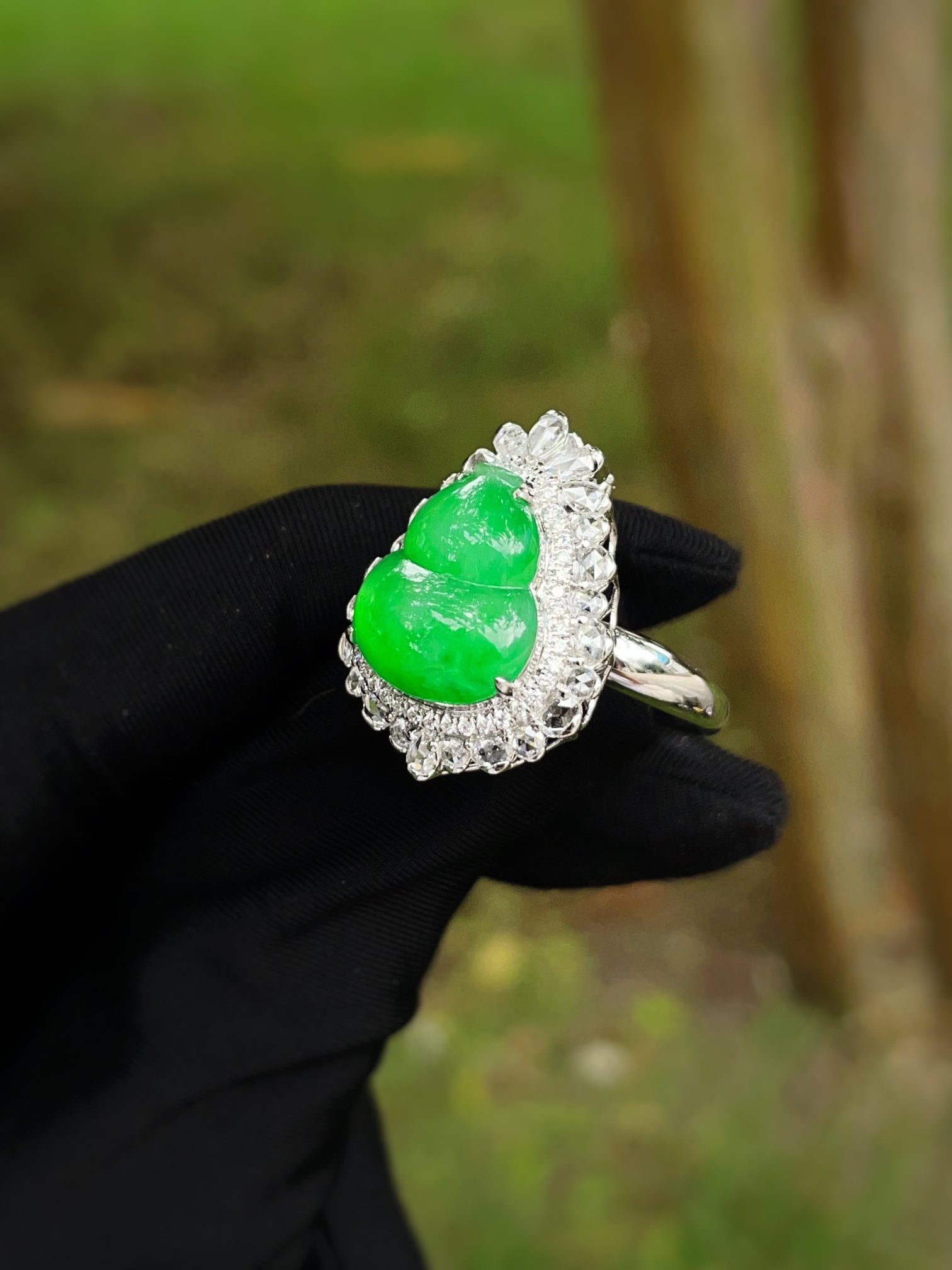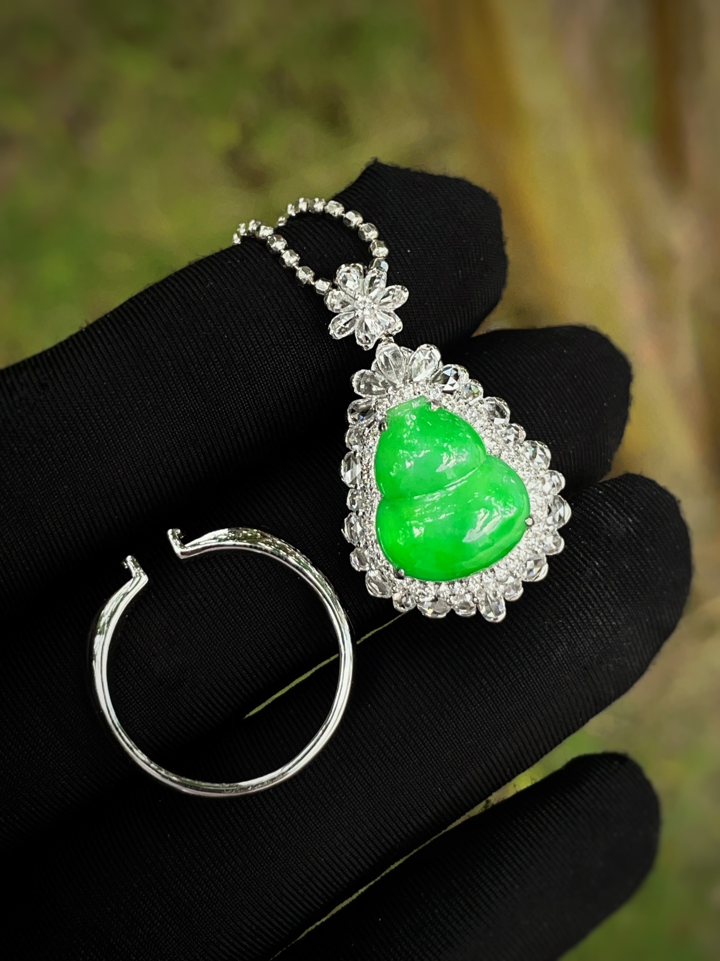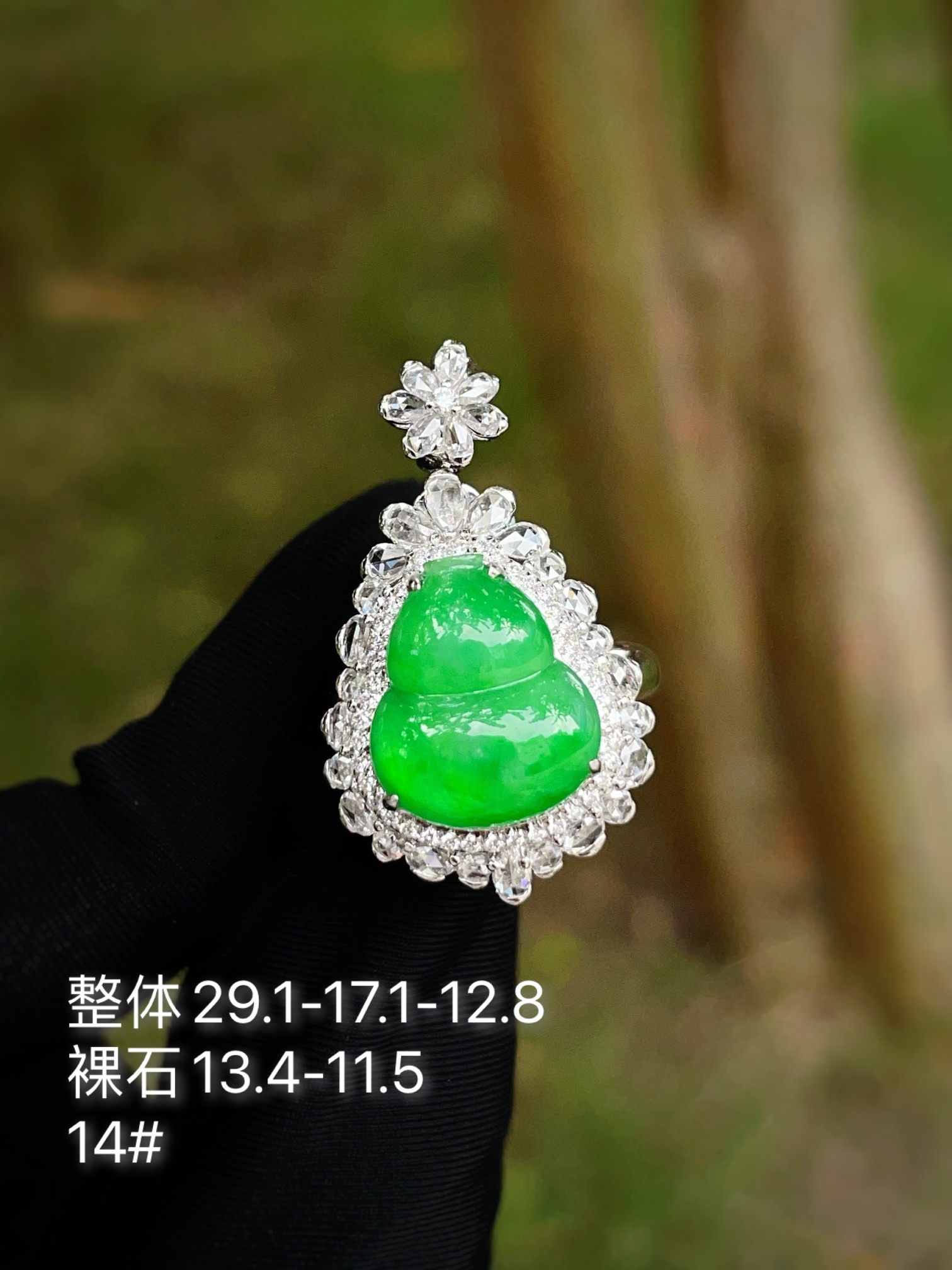 Jade ring, full of green gourd pendant ring dual-purpose, overall: 29.1-17.1-12.8, bare stone: 13.4-11.5