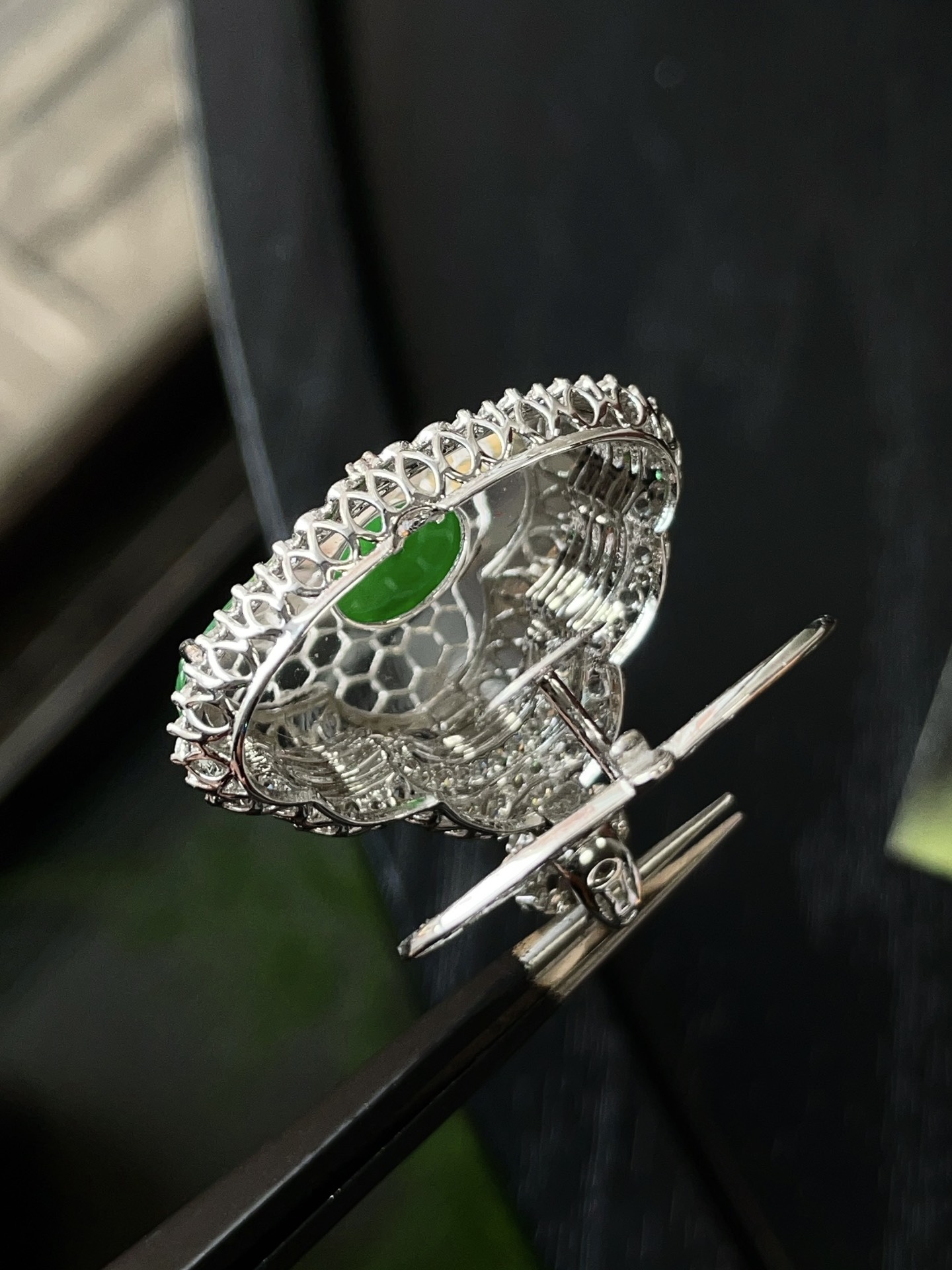 Emerald ring, 18k gold set with green egg face ring, overall: 20.4-18.-13.8, bare stone: 12.6-10.7