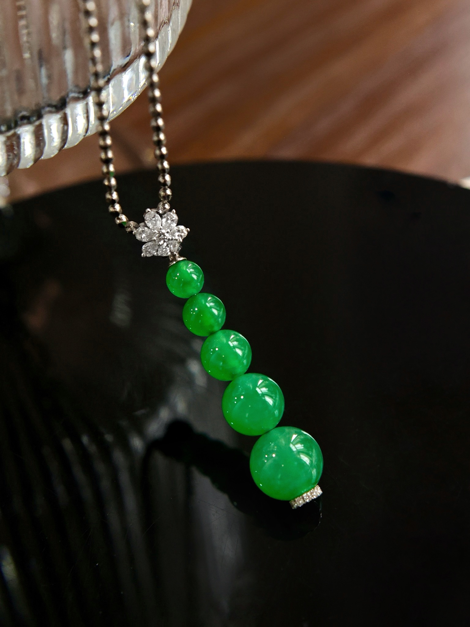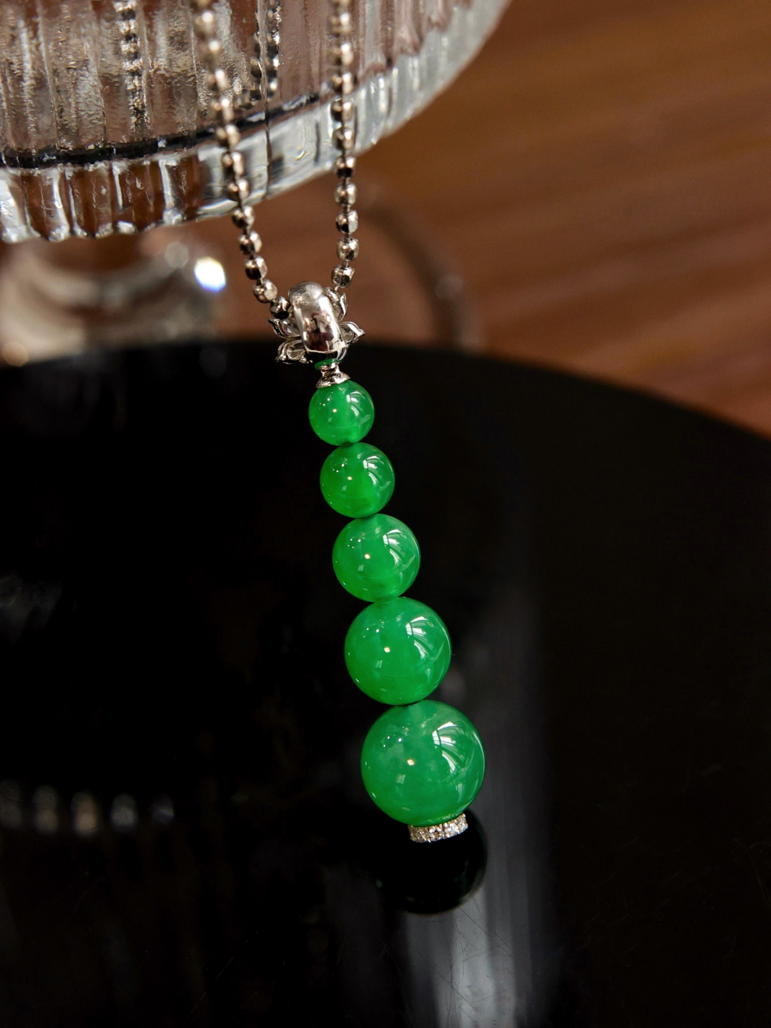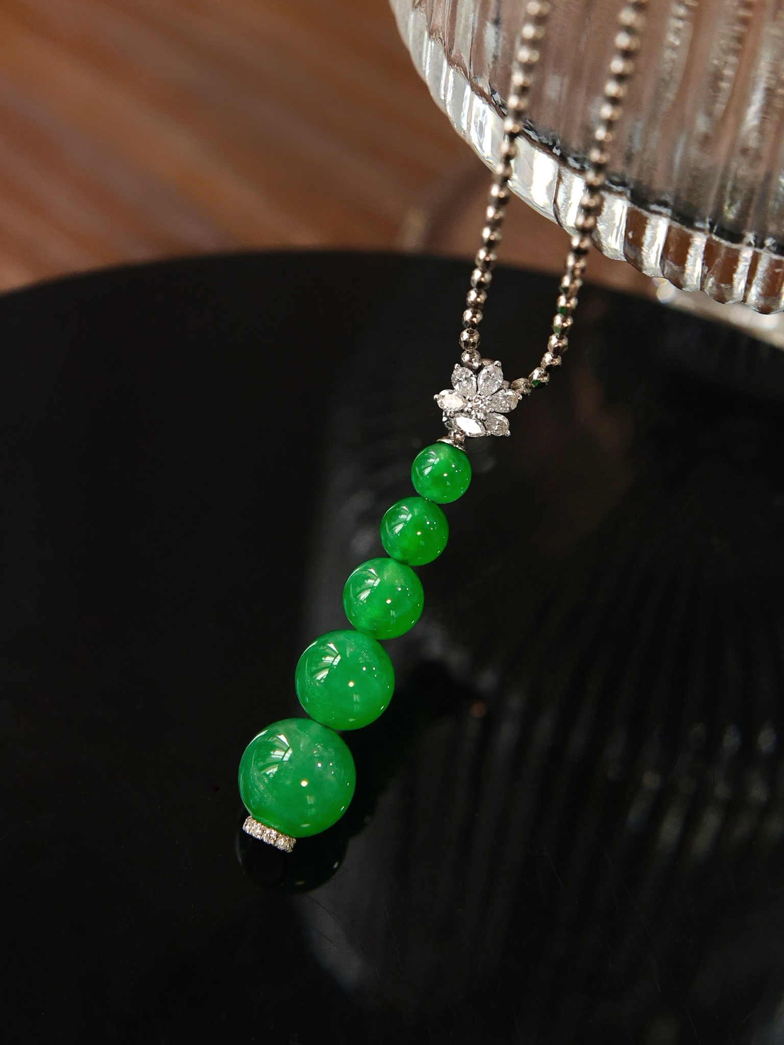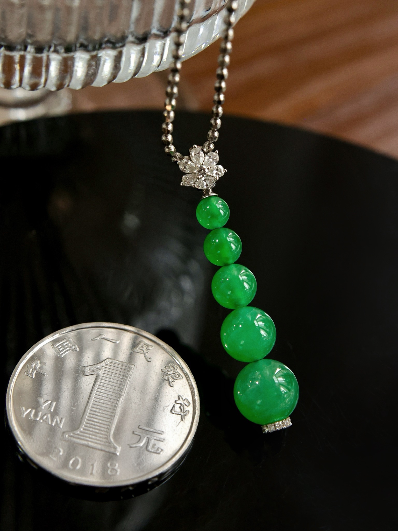 Jade pendant, 18k gold studded with green beads pendant, overall: 38.5-8.4, bare stone maximum: 8.4, minimum: 4.5
