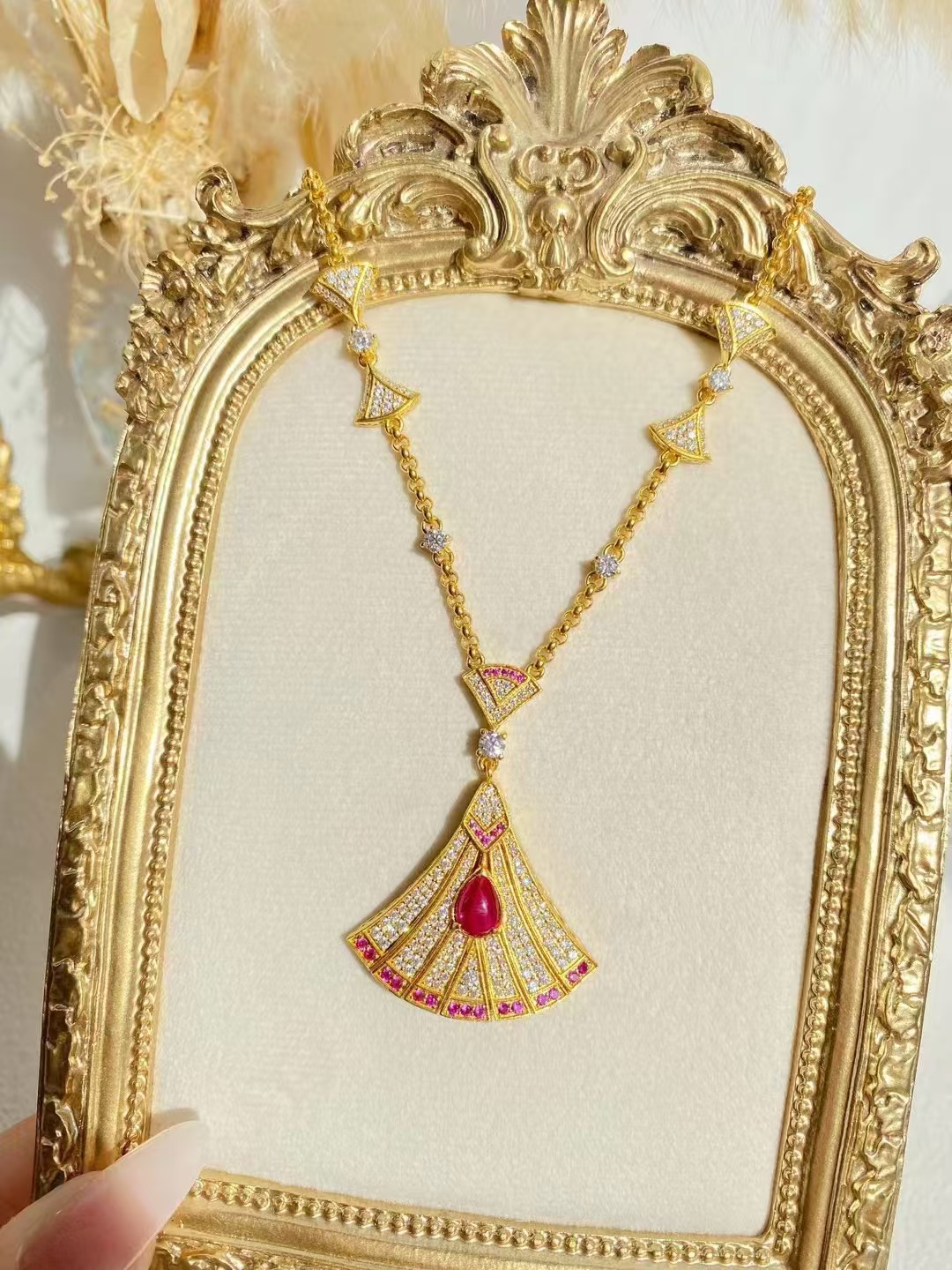 Ruby, Red Treasure fan necklace, Red Treasure with exquisite cutting and setting technology, 31.79g