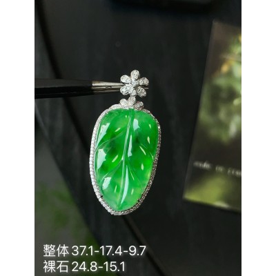 Jade pendant, 18k gold studded with green leaves pendant, overall: 37.1-17.4-9.7, bare stone: 24.8-15.1