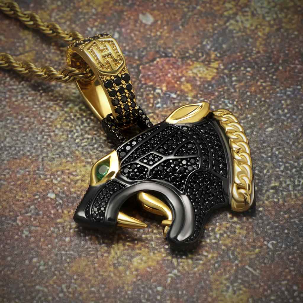 Helloice Iced Black Panther Head Pendant in Black Gold